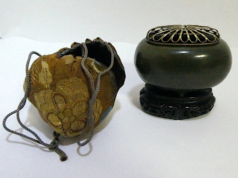 Song dynasty Chinese censer with Silk Purse and wooden presentation box