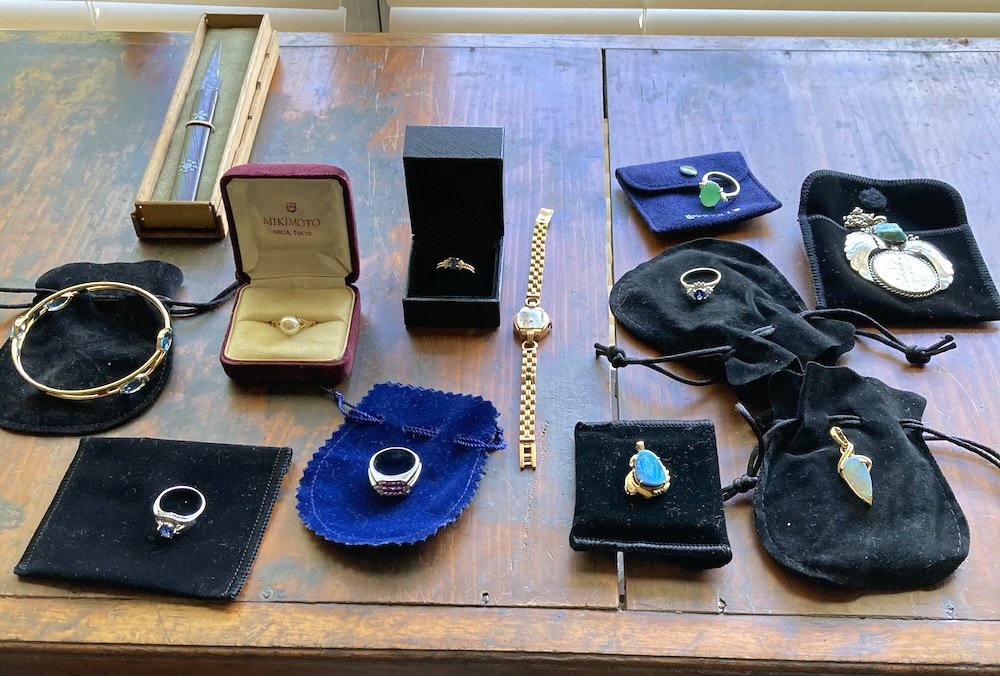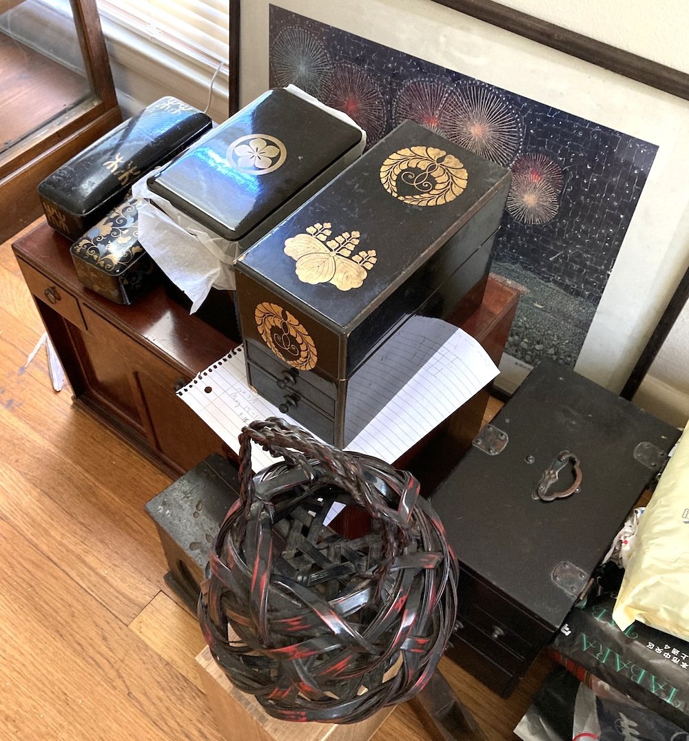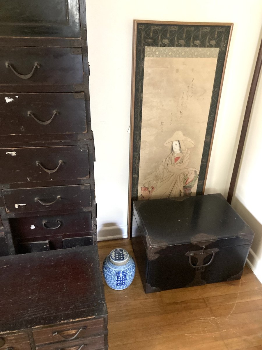 The collection consists of various Chinese and Japanese antiques such as a Qing dynasty incense burner, a Yoroi (Japanese samurai armor box) an old Japanese painting from around the 1840s, various lacquered Japanese boxes from the Edo and Meiji periods, as well as Jewelry with precious and semi precious stones.